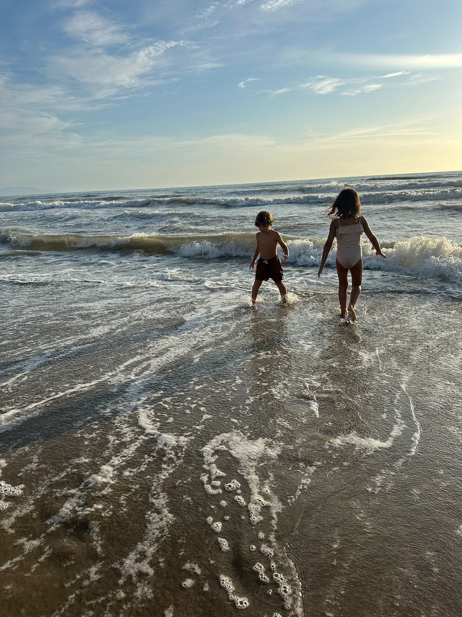 Tra le braccia di chi la ama, ha assaggiato l’estate con un sorriso timido, affondando i piedini nella sabbia fresca, come fosse un segreto appena svelato. Ogni goccia d’acqua che le sfiorava la pelle era una sorpresa, un piccolo gioco capace di accendere i suoi occhi di stupore.