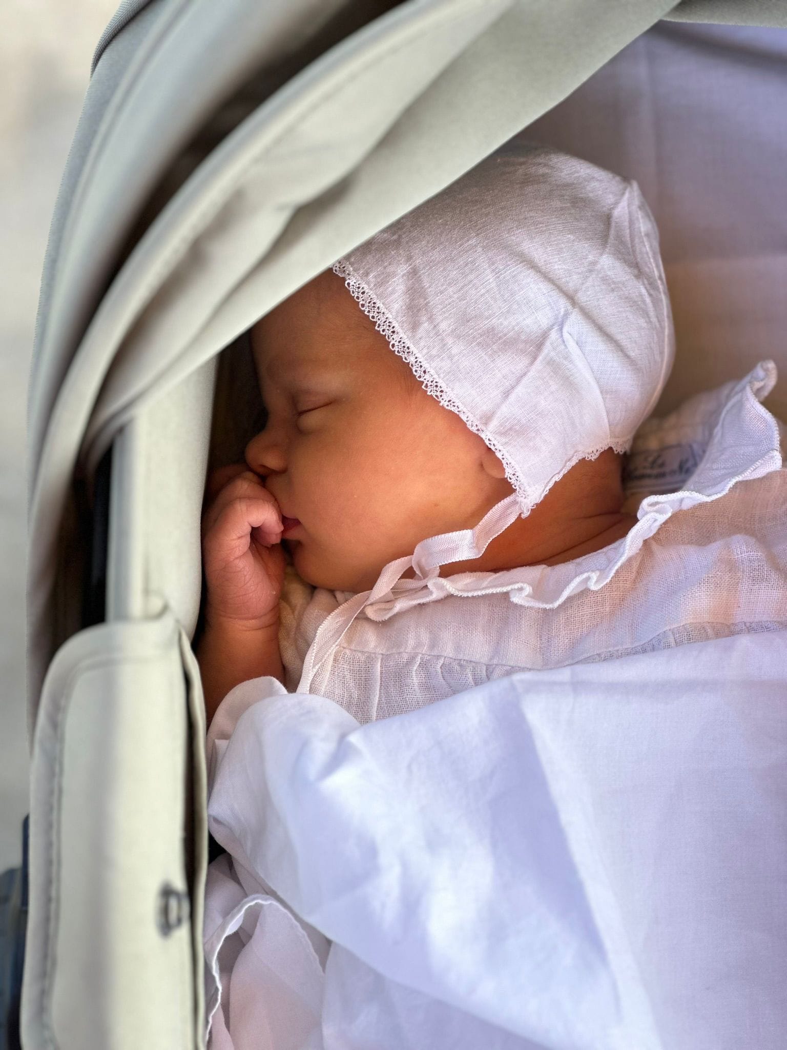 Clotilde ha incontrato il mare per la prima volta. Piccola e curiosa, ha spalancato gli occhi davanti a quell’azzurro infinito che sembra una carezza senza fine. Le onde le hanno parlato piano, come una ninna nanna antica, mentre il vento le accarezzava i capelli sottili e il profumo di salsedine si mescolava al dolce odore della sua pelle di latte.