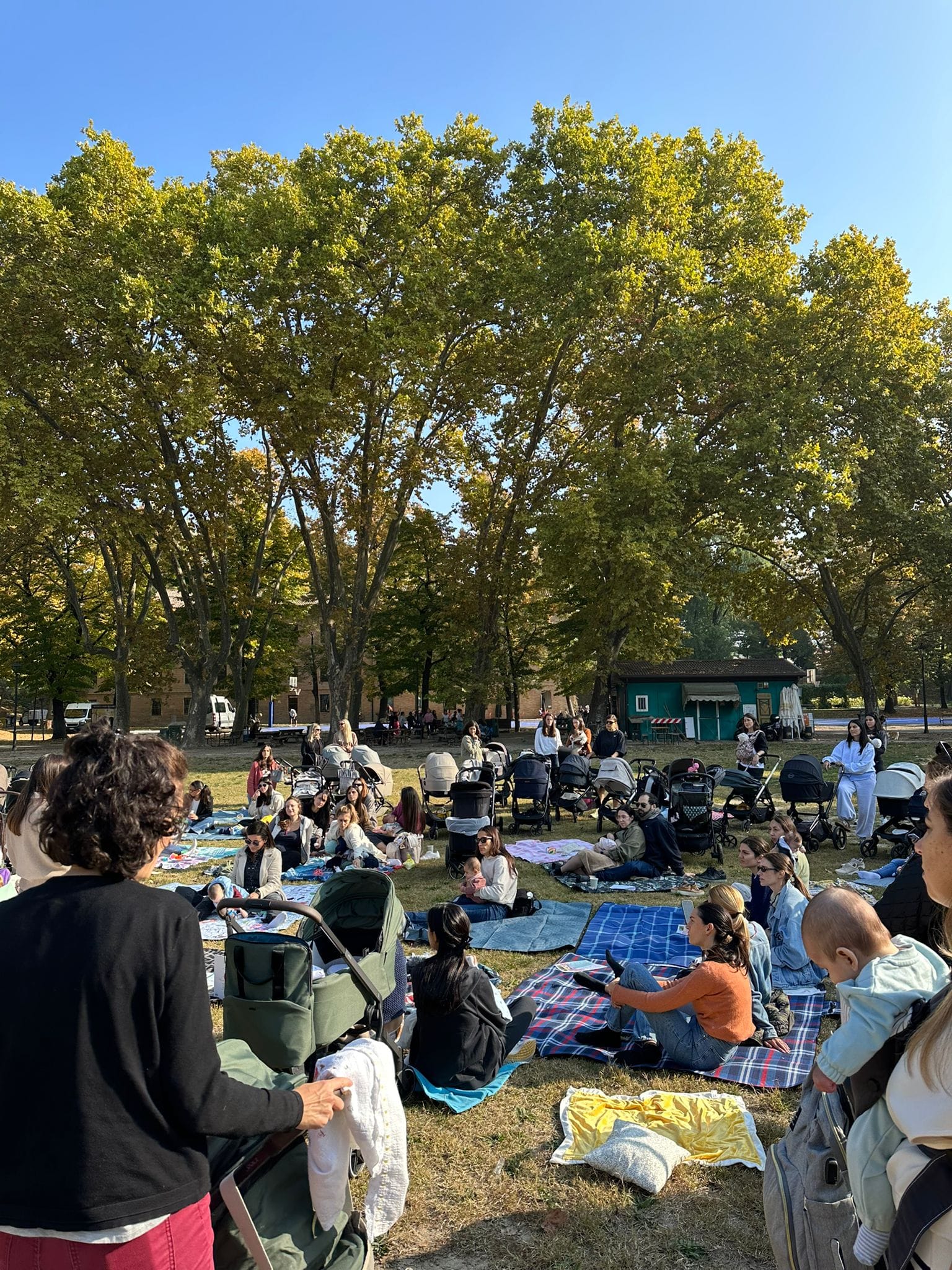 Mercoledì mattina, Parma si è svegliata con un sole gentile e un’aria frizzante di curiosità. Al Parco della Cittadella, tra plaid colorati e risate leggere, una cinquantina di mamme e una piccola orchestra di carrozzine e bimbi sorridenti si sono ritrovate per parlare di uno dei momenti più importanti (e teneri) della crescita: lo svezzamento.