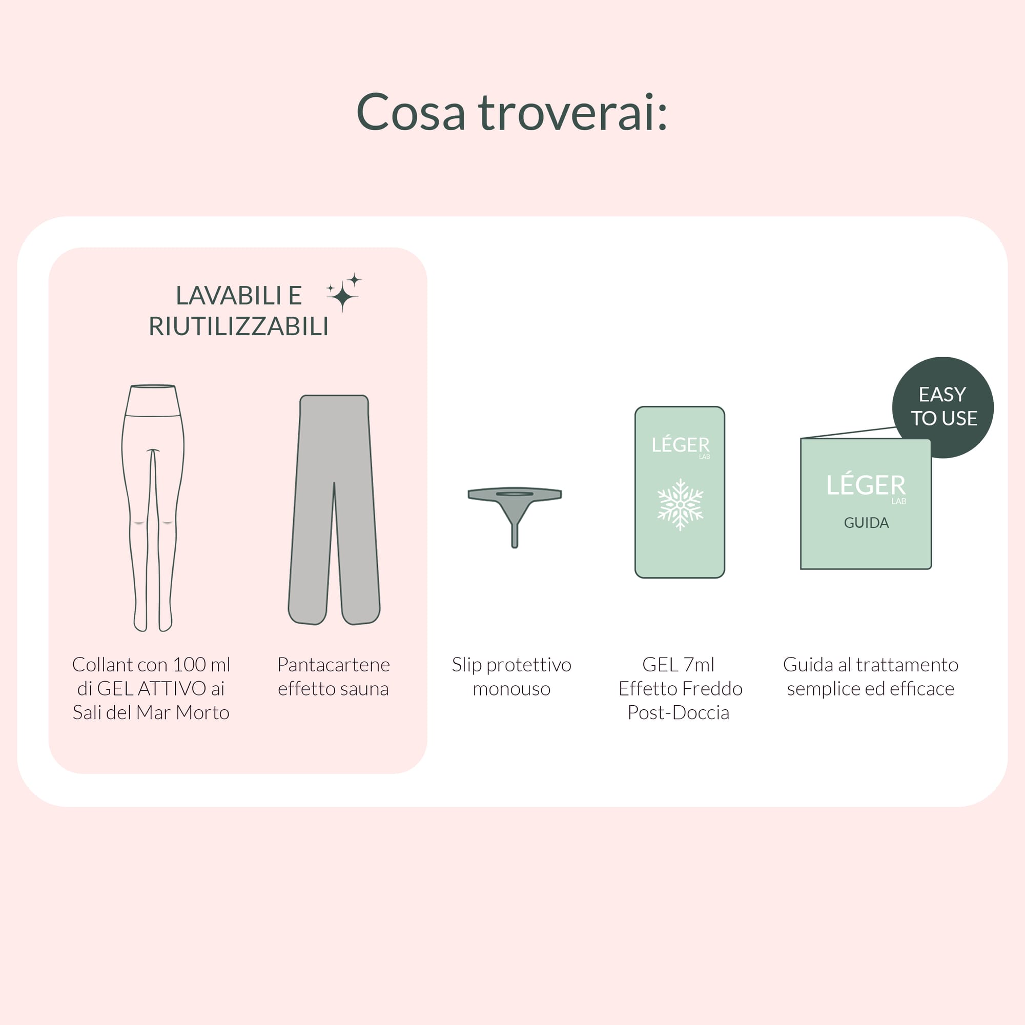 In più, il sistema è ricaricabile, il collant si riutilizza e il gel può essere reintegrato, riducendo gli sprechi e rendendo il trattamento più consapevole, oltre che efficace.