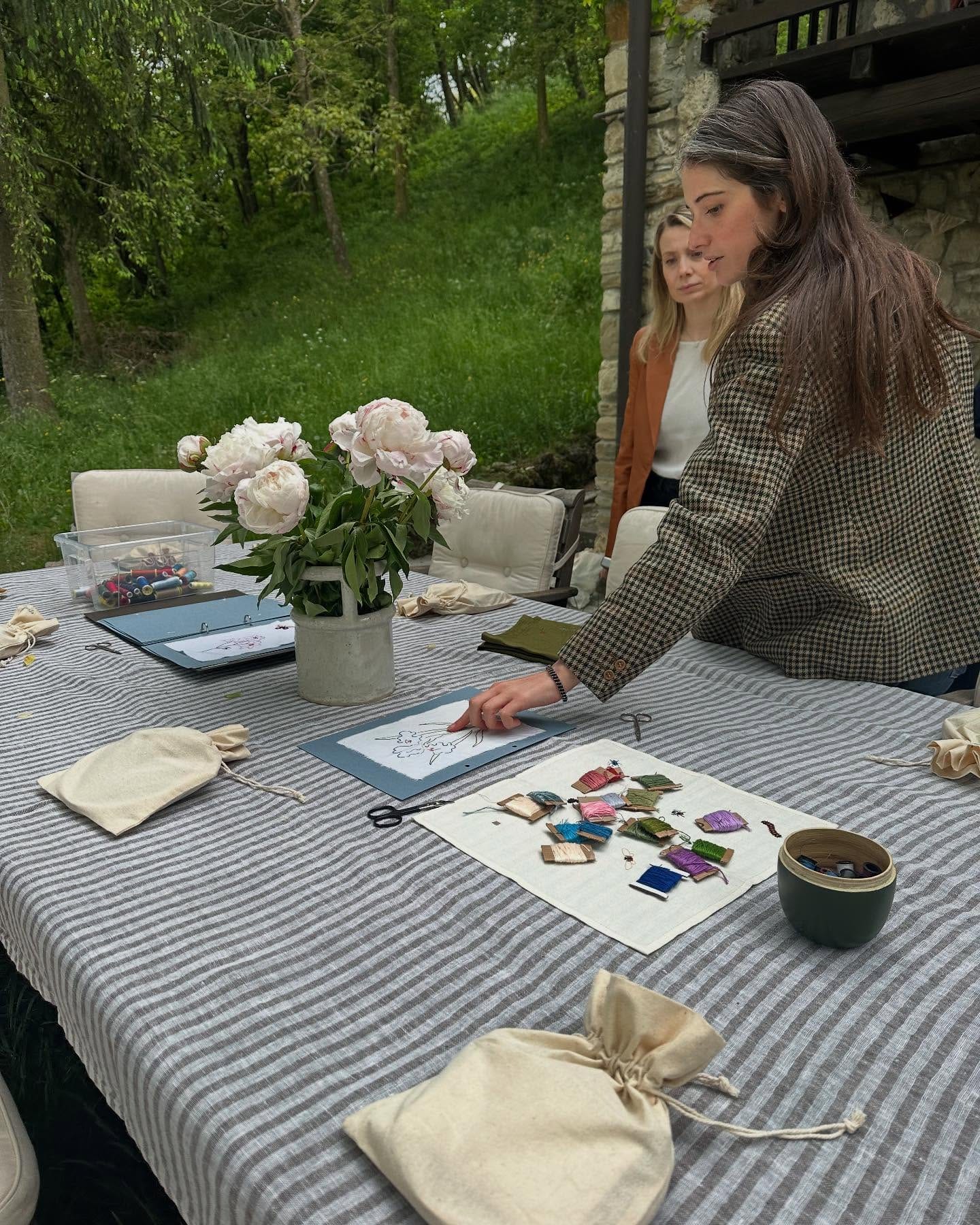 Due ore volate tra risate e silenzi concentrati, mani in movimento e occhi che si illuminavano a ogni nuovo dettaglio ricamato. Ogni partecipante è tornato a casa con il proprio tovagliolo in lino, il cerchio da ricamo e tutti gli strumenti per continuare a creare – ma soprattutto, con la soddisfazione di aver dato forma a qualcosa di bello con le proprie mani.
